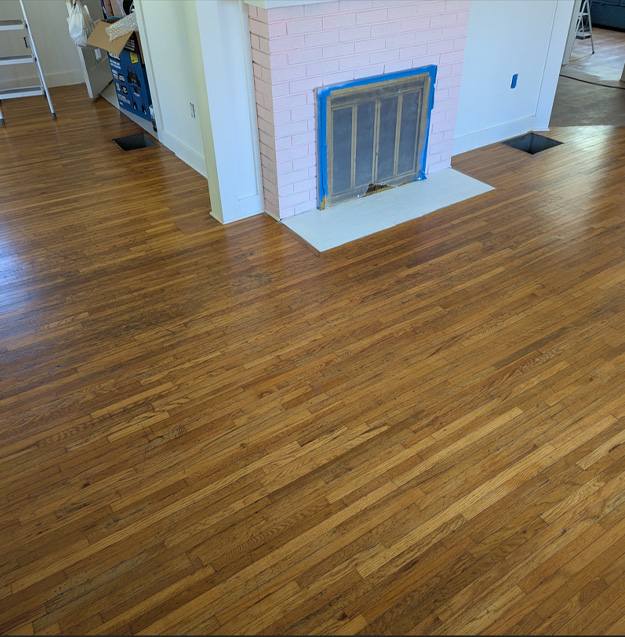 These floors were old and tired, so I did a light sand and added 2 coats of new poly. Really refreshed them w/out the need for a full refinish.